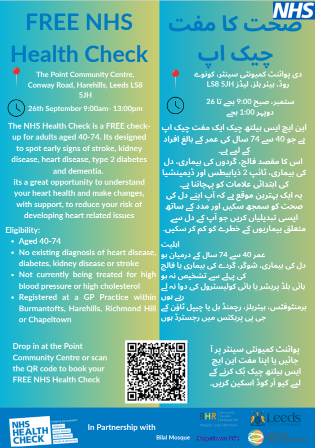 Chapeltown PCN Projects Click here to request an appointment* NHS HEALTH CHECKS Leeds Stop Smoking Service