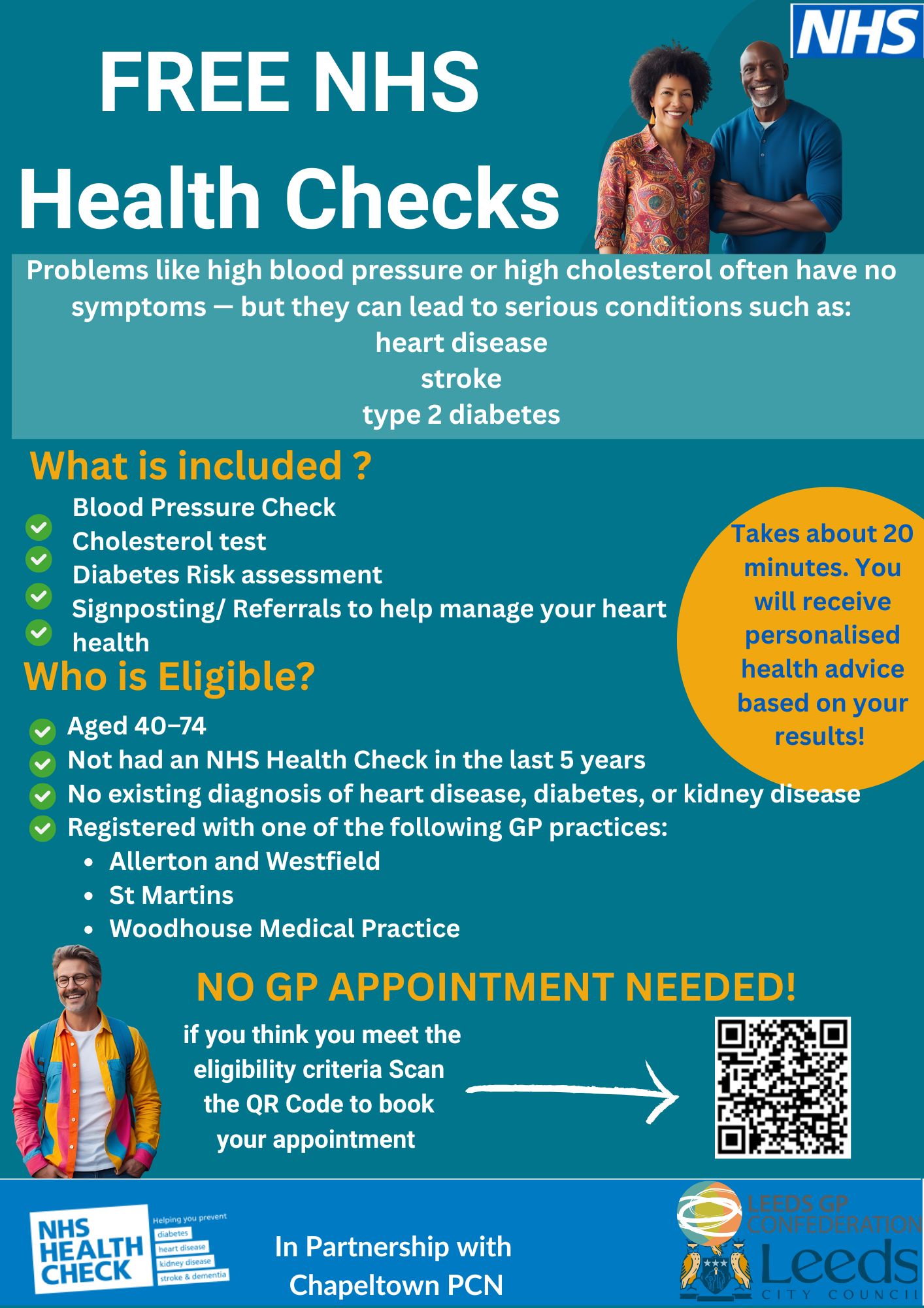 Chapeltown PCN Projects Click here to request an appointment* NHS HEALTH CHECKS Leeds Stop Smoking Service